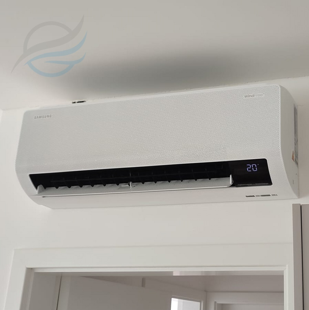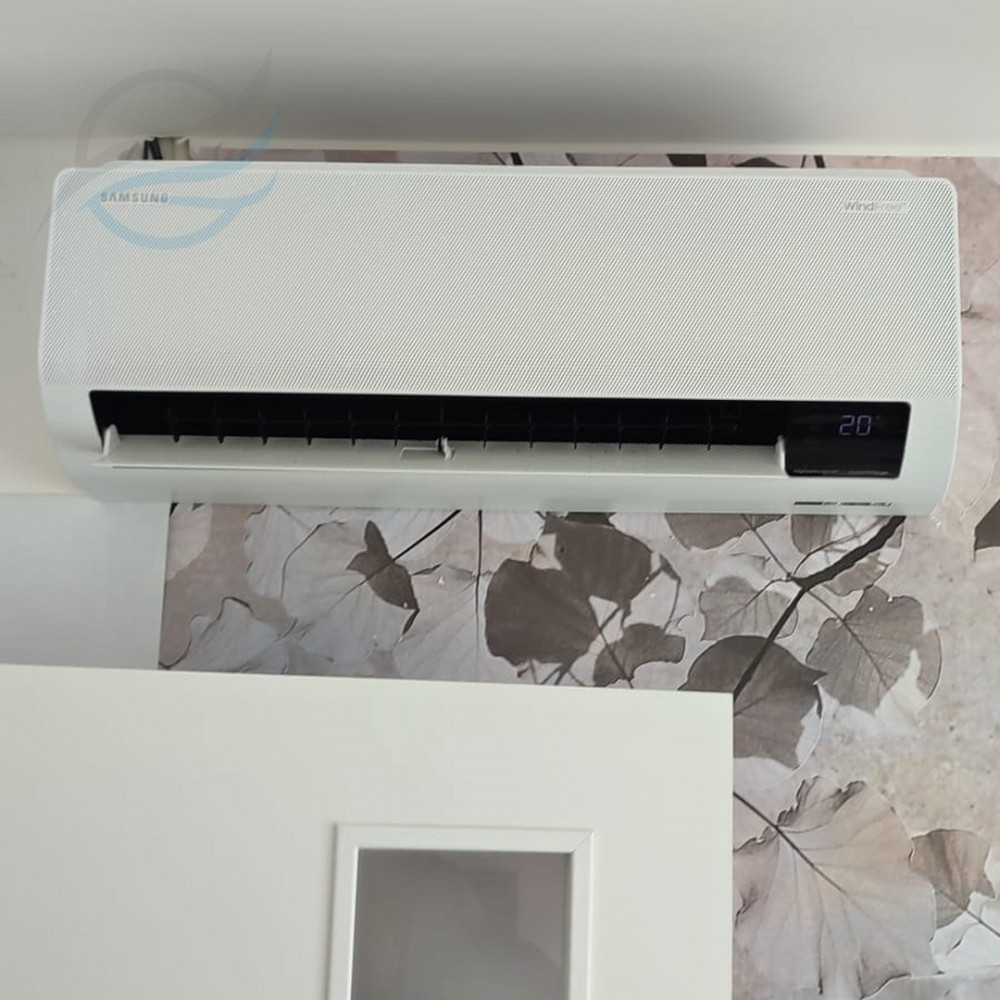 Kompletní montáž multisplitové klimatizace Samsung WindFree. Odvod kondenzátu pomocí čerpadel do kanalizace. Vnitřní jednotky Samsung WindFree 2,6 kW.