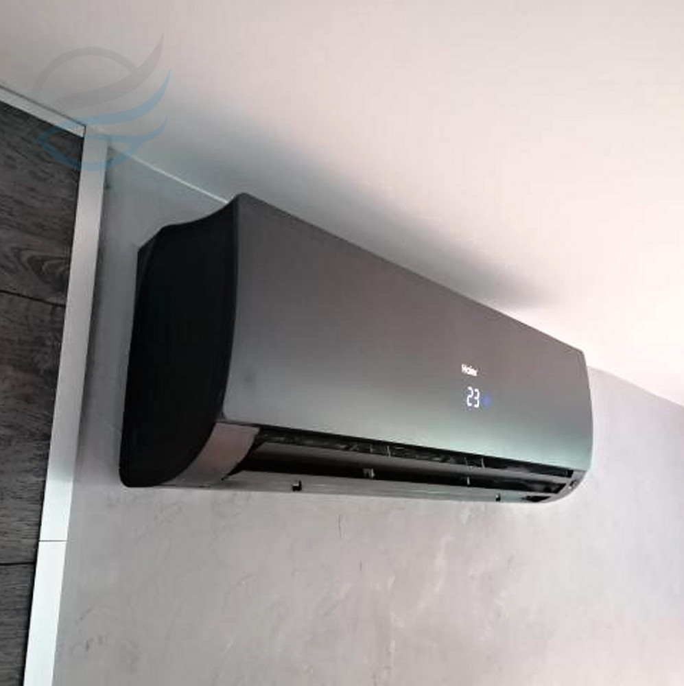 Montáž klimatizace 1+1 Haier s jednotkou Flexis Black. Odvod kondenzátu samospádem do exteriéru.