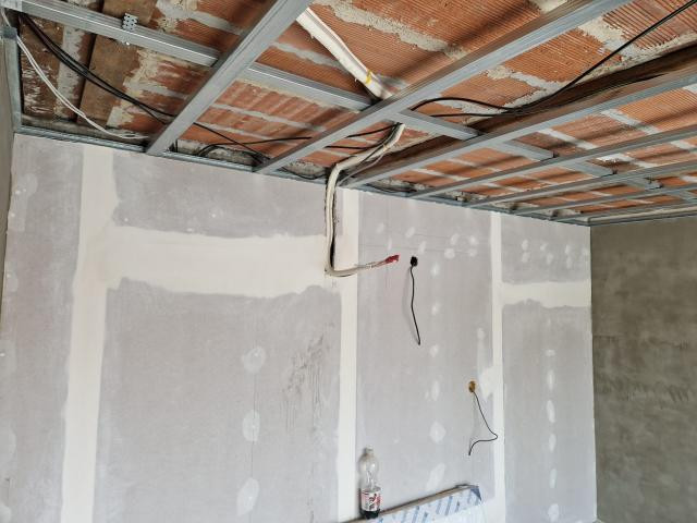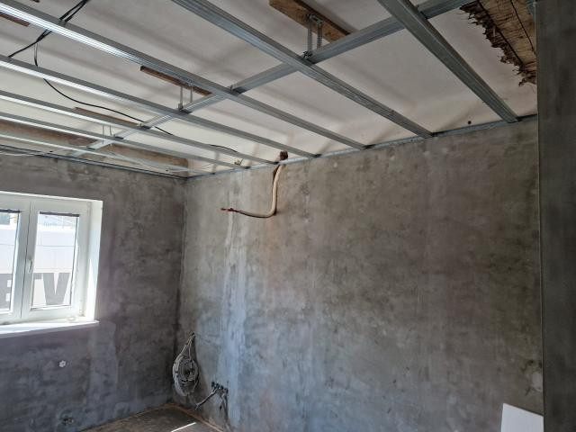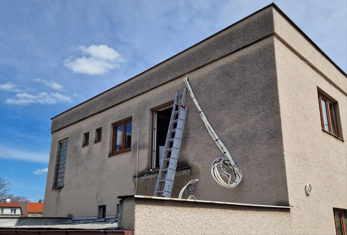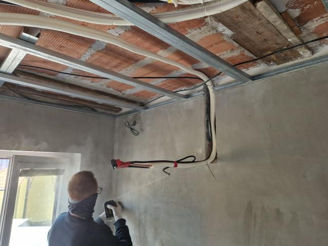 Kompletní příprava vedení pro multisplitovou klimatizaci Haier. Vedení nad rastrem SDK, na fasádě pod budoucím zateplením. Odvody kondenzátu pomocí čerpadel Slim BOX do exteriéru.