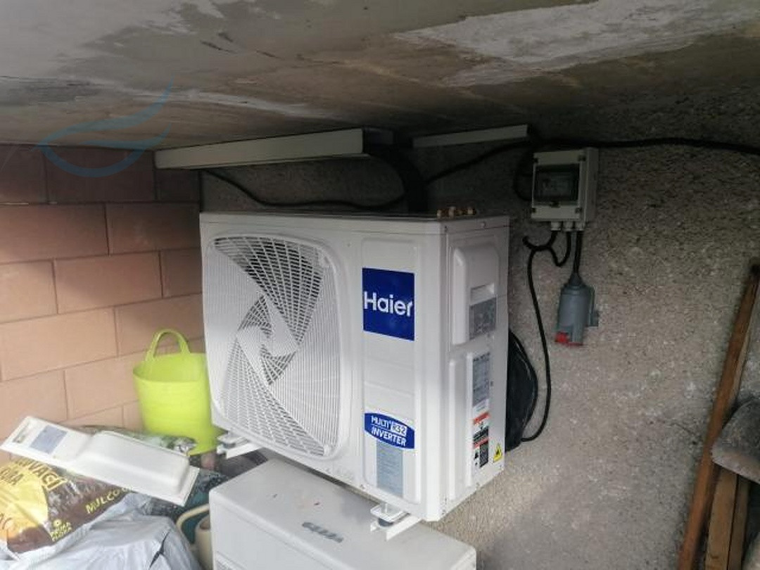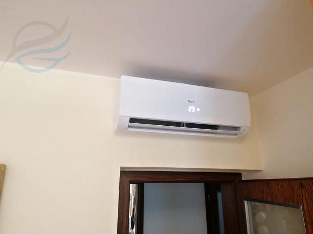 Dodávka a montáž multisplitové klimatizace Haier s jednotkami Flexis. Odvod kondenzátu pomocí čerpadel do exteriéru.