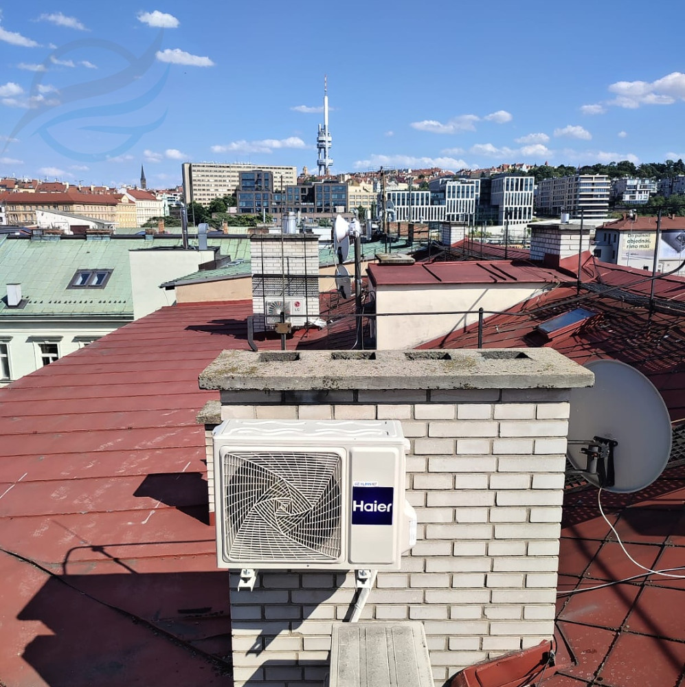 Kompletní montáž splitové klimatizace Haier 1+1 s jednotkou Pearl o výkonu 1 x 2,6 kW pro chlazení a topení. Odvod kondenzátu pomocí čerpadla.Místo realizace: Praha
