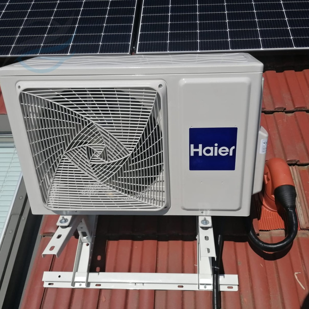 Kompletní montáž splitové klimatizace Haier 1+2 s jednotkami Pearl o výkonu 2 x 2,6 kW pro chlazení a topení. Odvod kondenzátu pomocí čerpadla.Místo realizace: Praha