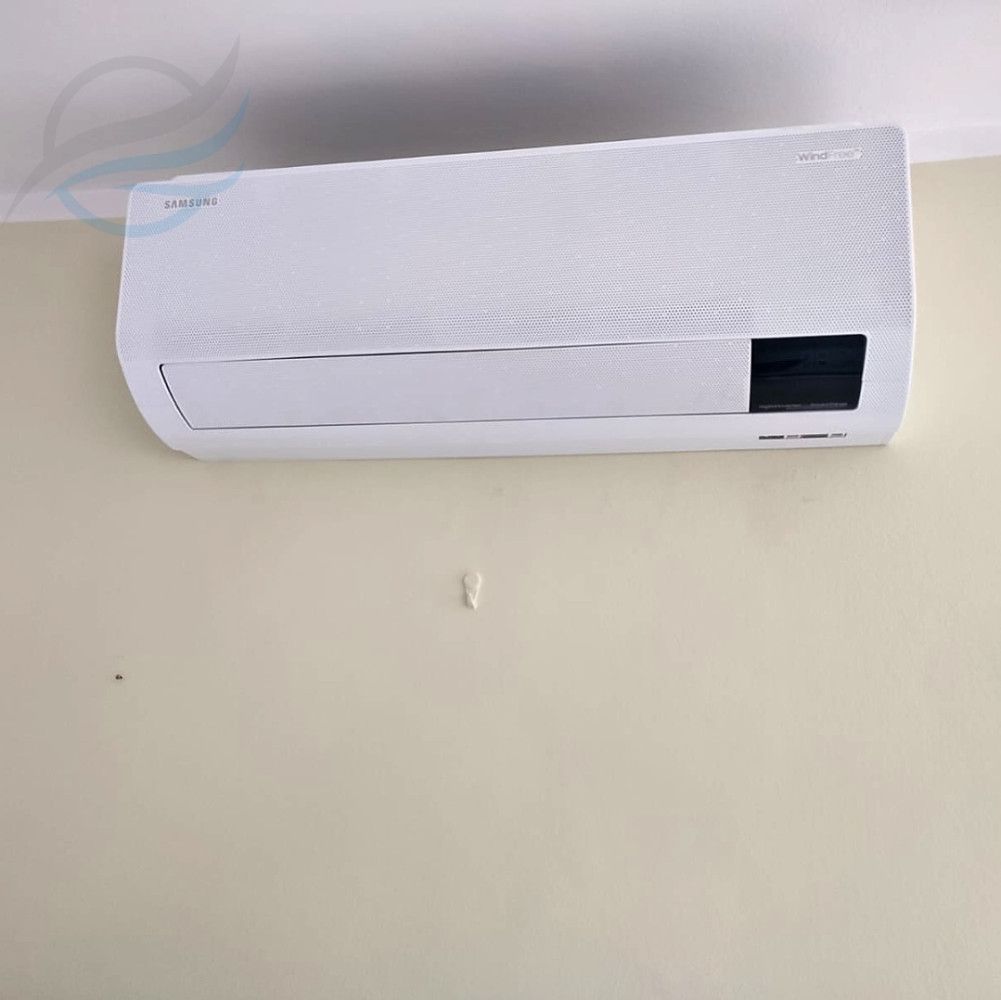 Kompletní montáž splitové klimatizace Samsung WindFree. Odvod kondenzátu pomocí čerpadel do kanalizace. Vnitřní jednotky Samsung WindFree 2,6 kW.