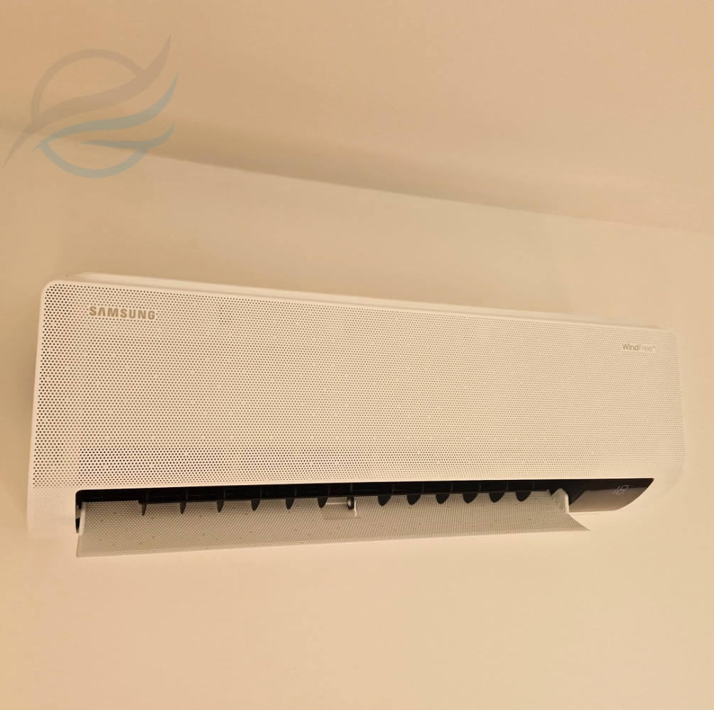Realizace dvou klimatizací do již zhotovené přípravy s jednou kazetovou jednotkou. Kazetová jednotka velmi chybně a neesteticky obložena developerem SDK. Chybně zhotoveno vedení Cu potrubí a kondenzátu, kde byla kazeta doplněna čerpadlem na odvod kondenzátu. Ostatní jednotky odvodněny samospádem. Provedena nejprve kompletní oprava a následně montáž jednotek Samsung WindFree.